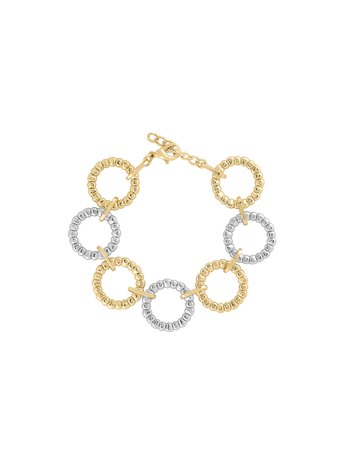 Halka formundaki detaylarıyla hareketli ve sofistike bir duruş kazanan bu bileklik, minimal şıklığı sevenler için vazgeçilmez bir tamamlayıcıdır. Ayarlanabilir zincir yapısı sayesinde bileğe rahatça uyum sağlar ve konforlu bir kullanım sunar.
